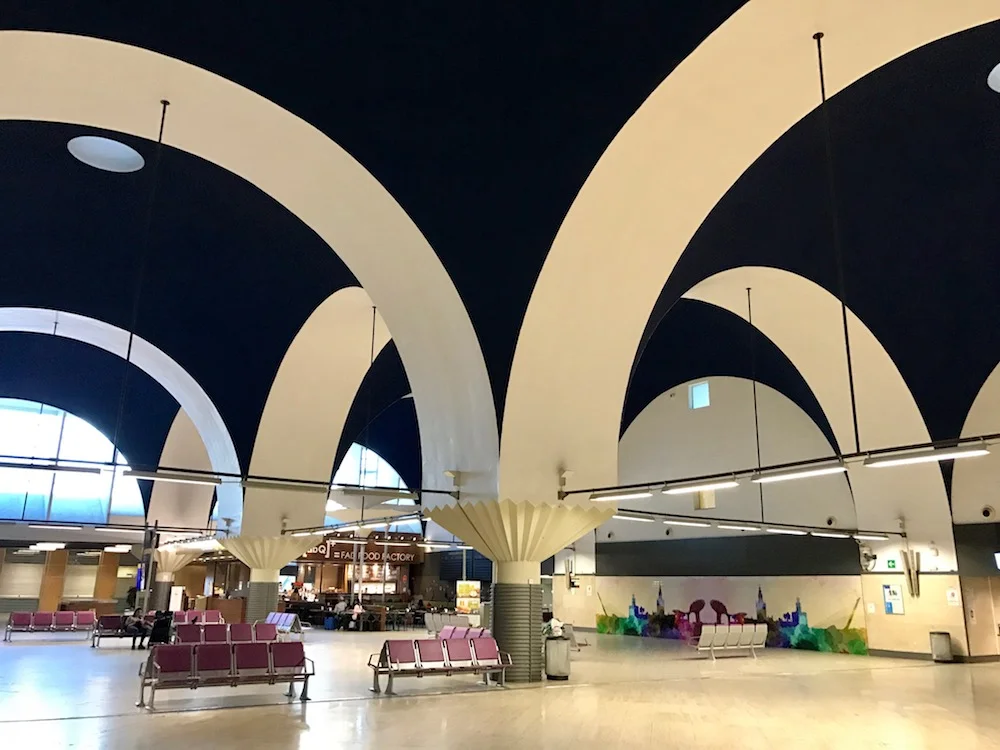 Online check-in seems to work well -- even if you're not a frequent flier and therefor don't have the mobile app installed -- the mobile site worked well each time we used it, and allowed us to download boarding passes to Passbook on our iPhones. We opted for a cab to the airport from our hotel in Seville's historic center. The ticketing concourse at SVQ is quite striking architecturally, with arches and vaulting boldly painted in contrasting black and white. We were surprised by the non-existent lines for an airport serving a city of this size. For context, Seville's population ranks between the 17th and 18th largest cities in the United States, Charlotte and Seattle, whose airports move 44.4 and 45.7 million passengers per year respectively; SVQ moves 4.3 million each year. Obviously there are a lot of variables here (SVQ is not a hub, for example), but all suffice it to say that we found the overall airport experience to be quite pleasant and laid back.